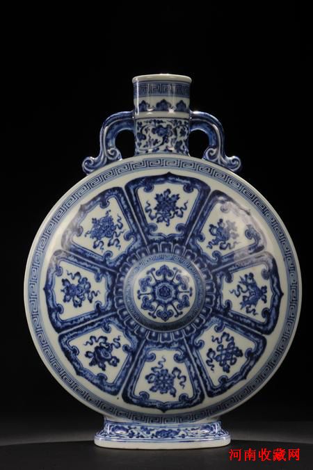 乾隆青花御瓷之隽品“清乾隆青花八吉祥纹抱月瓶”,器型端庄雅致,釉质清莹厚润,青花苍雅亮丽,尤其八吉祥纹饰,纷繁复杂,绘画却细致入微,颇见功力。