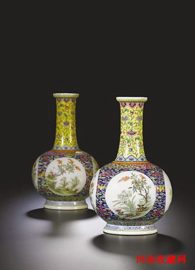 中国瓷器及工艺品拍卖会是此次秋拍的亮点。除了常规专场之外,设有5个专题,均为私人珍藏,涵盖了多个朝代及不同材质的珍品,如收藏家戴润斋珍藏的清乾隆御制珐琅彩“祥云瑞蝠”开光式“四季花卉”图纸捶瓶一对(见上图)。成化青花等370多件拍品预计总成交额逾7.8亿港元,估价为其历届中国瓷器及工艺品拍卖专场估价之最。