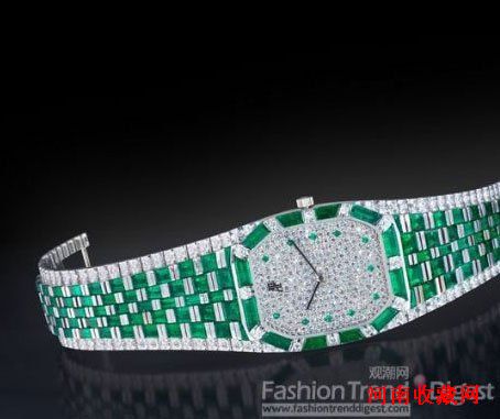 爱彼,铂金镶钻石及绿宝石,石英链带腕表,约2000年制