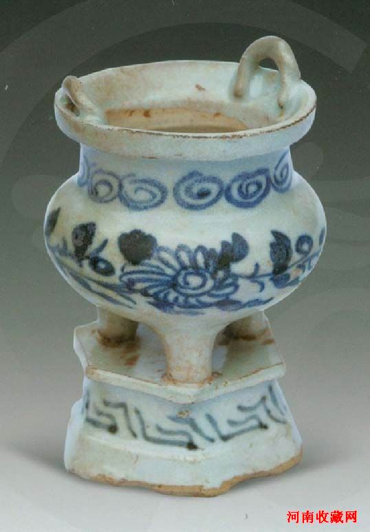 青花菊纹鼎式带座炉
