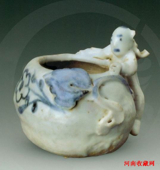青花婴戏鸟食罐