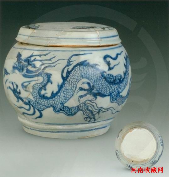 青花海水龙纹八棱带盖