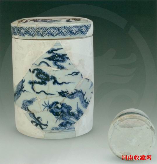 青花龙纹桶式盖罐