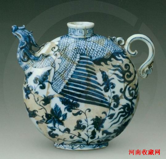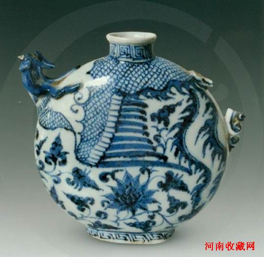 青花凤首扁壶