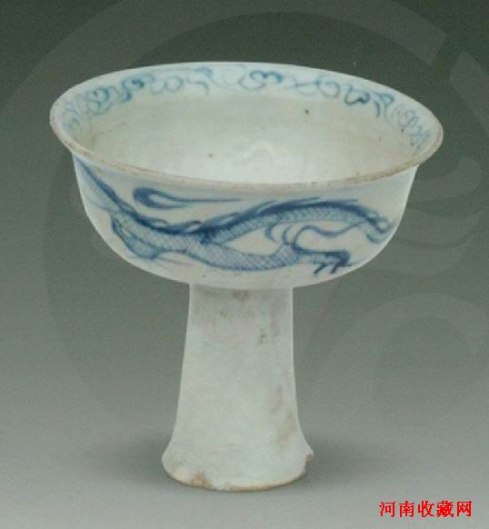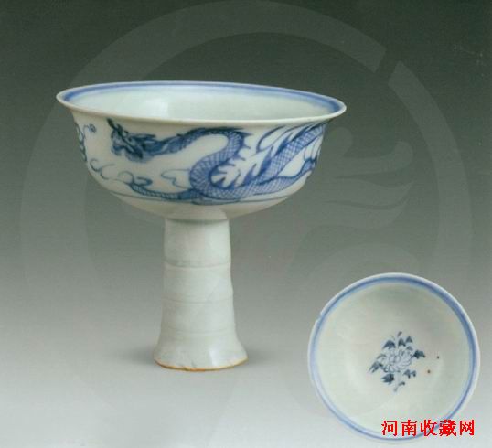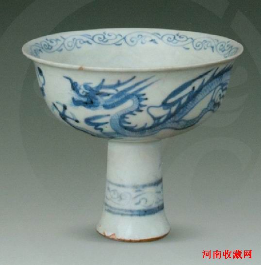 青花龙纹高足杯