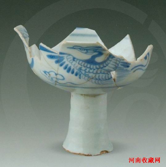 青花飞凤纹高足杯