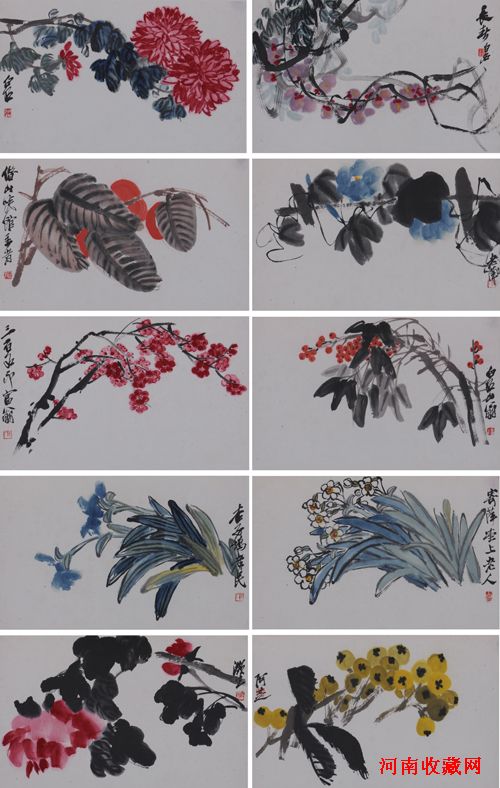 齐白石 群芳吐艳册页十开 高20 cm宽45 cm 设色纸本册页
