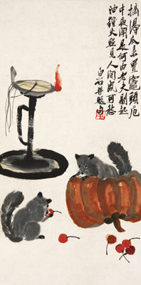 齐白石 灯鼠图 69*34cm 纸本设色 镜心