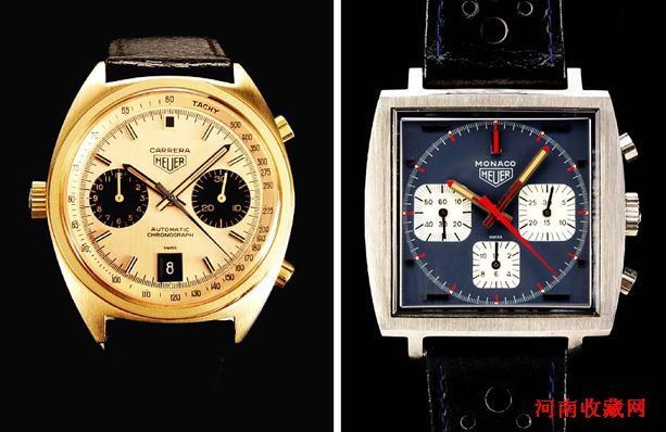 左:18K金Carrera自动计时表,估价7000-9000英镑;右:Monaco计时表,估价5000-7000英镑