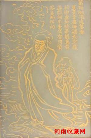 此件玉册制作精良,装潢上乘,为典型清代中期作品,因其内容十分别致,更进一步强调了它作为乾隆御用珍品的背景,罗汉图像最初源自印度克什米尔地区,而十六罗汉之艺术题材,随着印度佛教在中国社会的普遍流传而日益广大,最早的十六罗汉形象出自唐玄奘所译之《法住记》:佛陀临涅槃之时,嘱十六大阿罗汉,自延寿量,常住世间,游化说法,作众生福田,故佛寺丛林里常雕塑罗汉像,供养者众。受此影响,中原地区于公元10世纪中叶左右,在京洛、四川等地的画家之中,已然流行创作“十六罗汉”题材之绘画作品。时空斗转,五代时期高僧贯休大师所绘的十六罗汉形象,超然入化,姿态不拘,形骨奇特,胡貌梵相,曲尽其志,堪为历代罗汉画像中宗翰之作。其作品经多年流转,定于浙中,后供奉于杭州孤山文澜阁罗汉堂内。