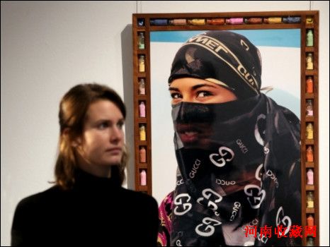 摩洛哥艺术家哈珊•哈迦(Hassan Hajjaj)的画作《恶意的眼神》(Malicious Look)。