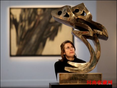 一位工作人员正在凝望伊朗著名雕塑家帕维兹•塔纳沃里(Parviz Tanavoli)的作品。