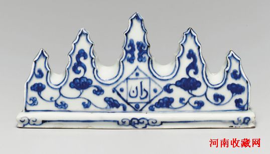明正德青花灵芝阿拉伯文五峰笔山,六字楷书款。估价:港币 1,200,000–1,800,000,美元 150,000–232,000。