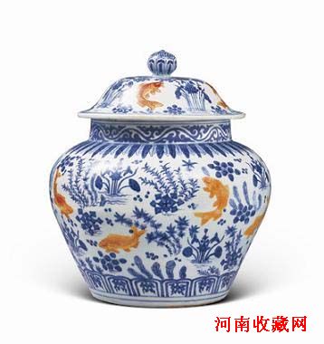这一件明嘉靖青花五彩鱼藻纹盖罐,应为上世纪八、九十年代苏富比见拍的“暂得楼”两件旧藏之一,此次出现在北京翰海秋季拍卖会上,肯定将引起各路买家的极大兴趣。