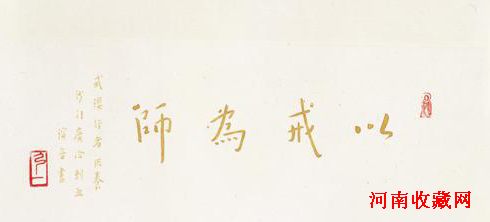 华辰曾创下弘一法师书法作品拍卖的最高纪录。这次参拍的几件弘一法师作品以血书《以戒为师》最为耀目,新加坡高僧广洽法师为其刺血,调和泥金所书,世所罕见。另外一件亦是王炳文先生旧藏,为法师晚年所作,书法刊落锋颖,已达天人合一的化境,实属难得的精绝之品。