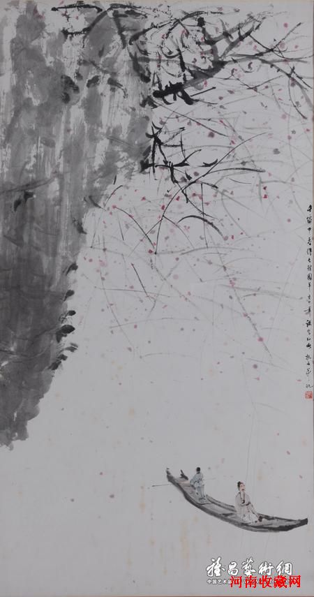 以传统文化、文学经典形象入画,是傅抱石极热衷的题材。此次保利推出的历史题材还有《赤壁图》,此作为其用古梅园羊毫笔写,聊聊几笔,再现东坡诗意。