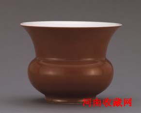 该杯高13.6厘米,深褐色,质地细密柔和,杯口曲线起伏平滑。