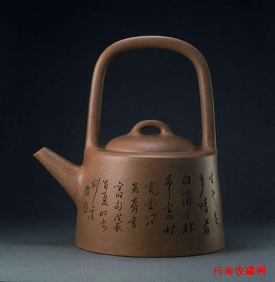 曼生提梁为周桂珍大师一生中的代表作,刻绘上与很多大师有过合作,其中以冯其庸最为代表。此壶造型为清代著名金石家陈鸿数设计,成型难度很高,尤其是提梁。如此硕大的形体完美而无瑕疵,实属不易,再加冯其庸书法,并由当代陶刻大师谭泉海命名,堪称经典,正如周大师书中所言为一生中最为满意之作品。(周桂珍证书中说明此件为孤品)