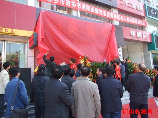 当天上午,在喜庆的鞭炮声中,省、市政协和有关单位领导出席剪彩仪式并为市政协书画院“世宝堂画廊”揭牌。