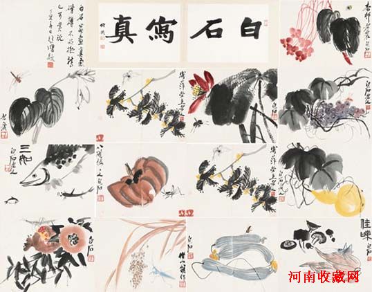 28×35cm×12,钤印:白石、白石翁、齐大、借山翁