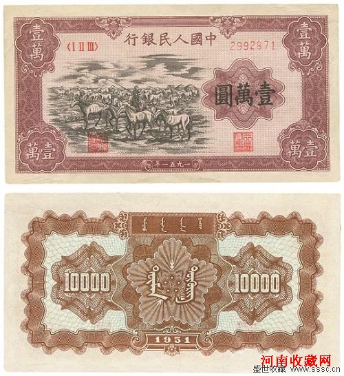 本次拍卖会推出的“江南藏韵——柏文先生收藏中国纸币”专场格外引人注目。整场拍品100%成交,各路买家争相举拍,400件拍品总成交逾815万,平均每件拍品超2万余元,在纸币拍卖界亦属罕见。其专场中最令人瞩目的拍品,是中国人民银行于1951年期间在内蒙古地区发行的一枚“牧马图”壹万圆面额人民币,品相极好,存世绝少,是中国第一套人民币中最为珍贵的品种。这件拍品起拍价为80万元人民币,前三轮叫价此纸钞的价格就已经超过100万元人民币,最后经过各路买家十几轮的激烈争夺,最后以创记录的230万元刷新中国纸钞成交的世界记录,成为价值最为昂贵的“中国纸币之王”。