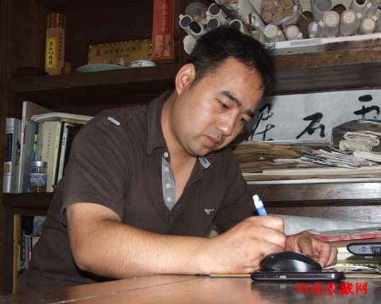 河南收藏网郑州古玩城办事处主任袁红亮在工作