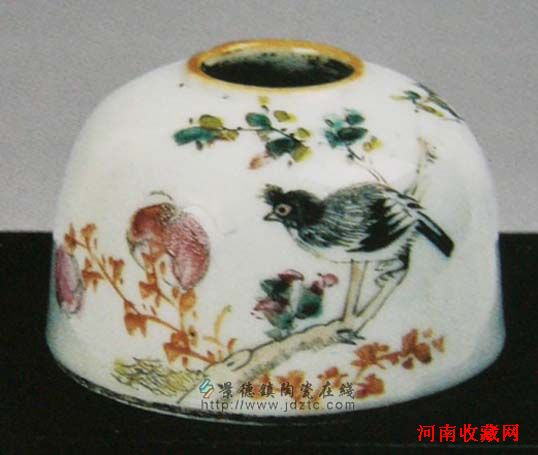 清 浅降彩花鸟水盂 官窑内造 红款