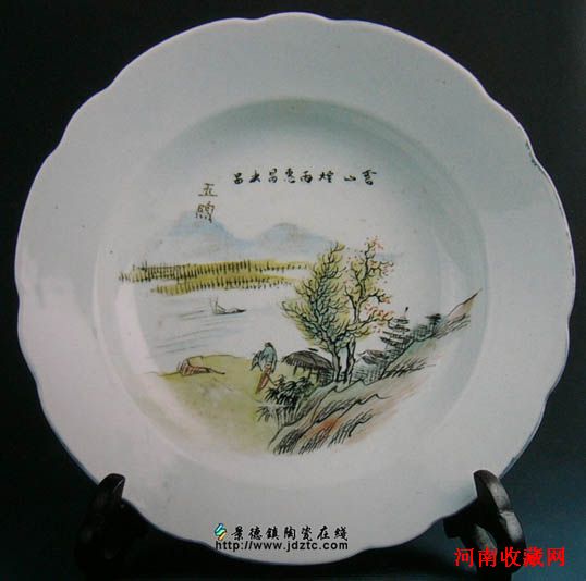民国 水墨彩绘山水盘