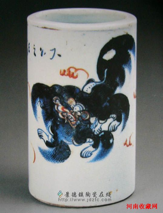 清末 彩绘狮子笔筒