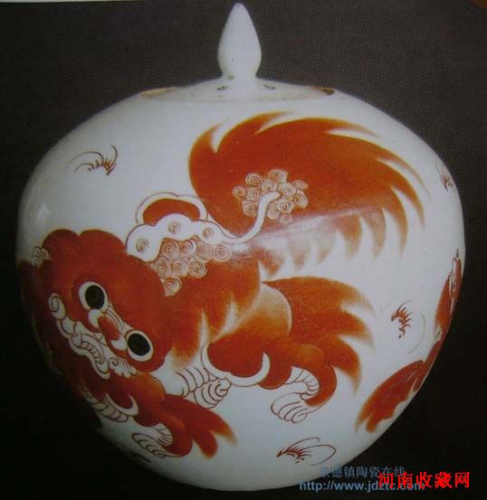 民国五年 太少红狮 刘和义作 西瓜盖罐