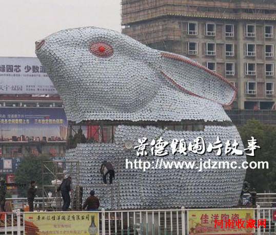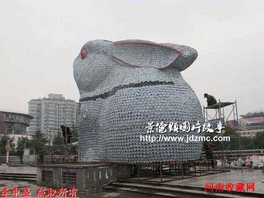 从前些年开始,每到农历新年,瓷都市民都可以在人民广场看到一个由瓷盘、瓷杯、瓷碗等搭成的生肖形象,这已经成为了景德镇迎接新年的一大特色,向外界展现千年“瓷都”的活力和深厚的文化底蕴。兔年春节临近,景德镇的能工巧匠又一次将“年味”和“瓷文化”相融,一座由瓷盘、瓷杯、瓷碗组成的瓷兔即将搭建完成,为我市营造出浓郁的节日气氛。