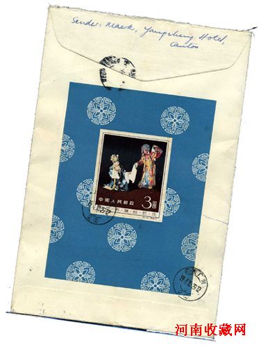 1964年广州寄香港挂号封,贴纪63青铜器全套、背贴纪94M梅兰芳型张封一枚、有香港落地戳