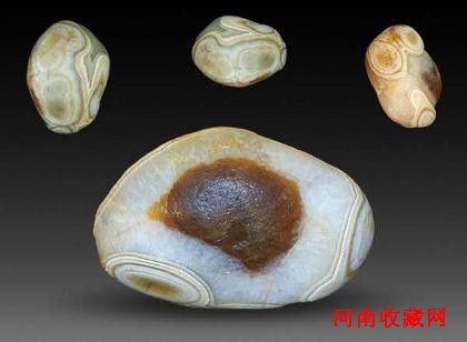 这块玛瑙奇石另有一处与众不同之处就是从不同的方向观察会出现不同的神奇图形,其状似:玉兔,佛掌,鬼脸,为此奇石平添了无限的赏玩乐趣。