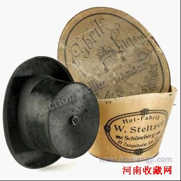 拍品号: 20110326-368 是 由德国 Zylinder 在1896年 制造的礼帽式间谍相机样机,由德国柏林当时的制帽厂 Steltzer 制作。 (Hut-Fabrik Steltzer) 。预估价在5000-8000 欧元。此台样机是目前所知的唯一一台。