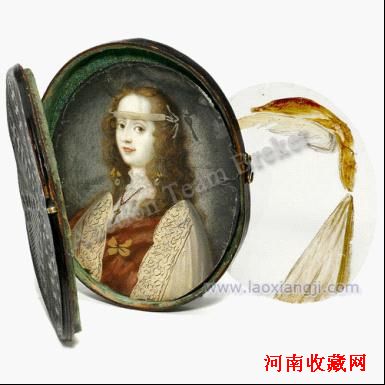 作为摄影史前史里面同样罕见的是一件早期的瑞典女王Christina 的变换图片。约1650年制作。她的衣服和头发饰品通过17张不同式样的云母模片来变换。拍品号20110326-407。预估价在4000-6000欧元。