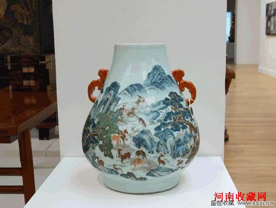 清乾隆时期的粉彩“百鹿”双耳宽口壶