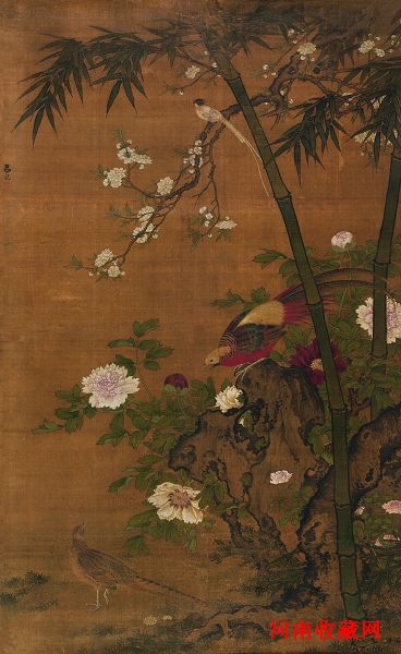 明代院体花鸟画大家吕纪的《锦绣春意图》是其以工整精丽的院体传统作画,造型准确,设色鲜艳,巨大的画幅中的锦鸡、牡丹、竹雀奇石都远宗南宋院体格,廷续了黄筌工整细致的画风及钩勒笔法,赋色浓郁且富丽堂皇,动植物造型生动活泼,是明代花鸟作品中的一流精品,当年由纽约苏富比1989年拍卖。