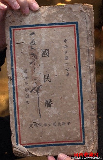 拍卖行工作人员展示一本1928年出版的民国“国民历”