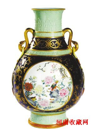 公开资料显示,这件令中国买家在苏富比拍卖会上争夺激烈的瓷器,全名为“霁蓝描金开光粉彩花鸟暗刻松石绿釉如意双耳尊”,在上拍前的鉴定中,苏富比专家认为这件瓷器可能为民国时期的仿品,因此谨慎地标明“类属民国”。在预展中,不少人发现这件瓷器品相不够完整,据媒体报道的瓷器状态报告称,“瓶身与底足断开又黏合上,瓶口及耳朵鎏金部分有些磨损”。然而,正是这件有瑕疵的艺术品令中国买家在之后的拍卖会上“血拼”。据相关人士透露,当时在场的国外买家一直沉默,中国买家却异常兴奋,最终将这件瓷器的价格敲定在1800.25万美元的历史高位上。