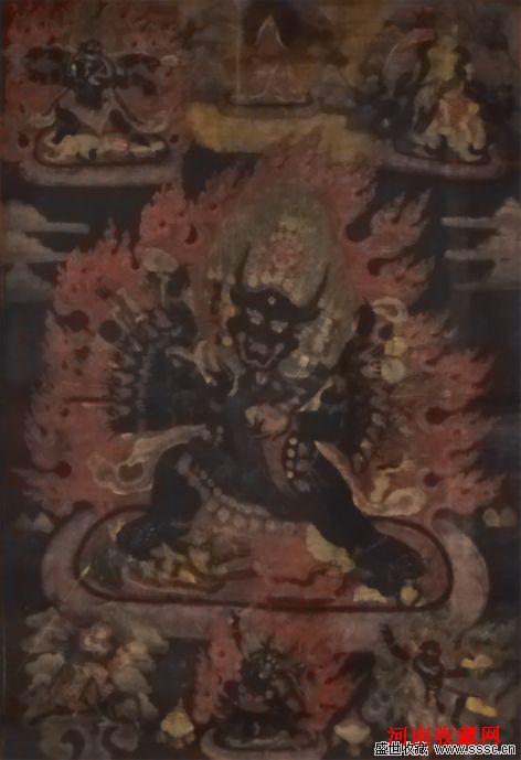 古董珍玩部分也是精彩纷呈,有明代唐卡主尊――大威德金刚,本幅为格鲁派修行供奉的一张唐卡,经鉴定绘制于明代或清代早期,品像保存基本完整,唐卡的绘制也是少有的精细,大威德护法每只手所持的法器都清晰精美,脚下所踩的印度教天神都是表情生动,唐卡配色完美,使用了珍贵的一些天然矿料做为颜料。上方绘有上师、打黑天等护法,下方有格萨尔王等护法,绘制也同样细致。同时本幅唐卡于2009年6月参加河南卫视《华豫之门》节目录制。评审专家对本幅作品评价颇高。被评为当期的民间国宝,登上了珍宝台。附有《华豫之门》节目组鉴定证书。