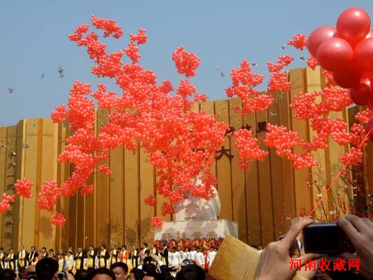 轩辕黄帝故里,黄帝塑像庄严伟岸,气宇轩昂。拜祖广场上人山人海,气球点缀。