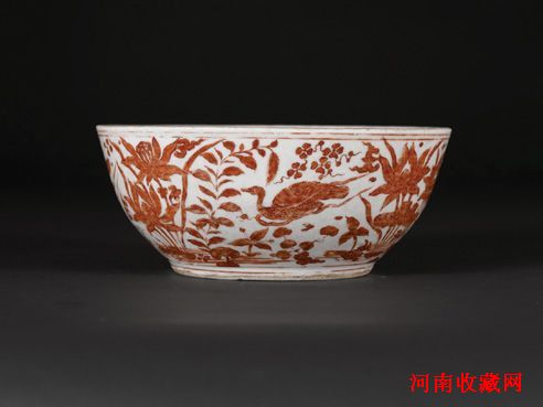 明正德 矾红彩鸳鸯戏莲池纹洗:官窑重器绝世孤品
