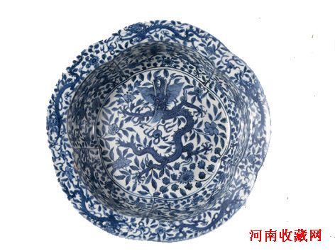 明万历 青花龙纹折沿梅花洗:存世稀少青花精品