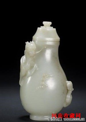 清 白玉龙凤盖瓶