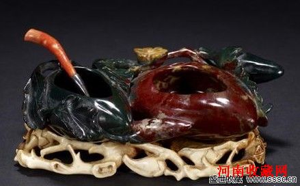 清 寿山石巧雕双桃洗
