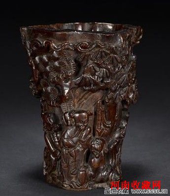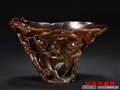 清 犀角雕螭纹兰花杯
