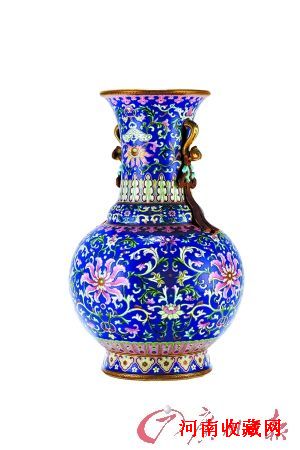 清乾隆宝石蓝地洋彩莲花如意万代尊