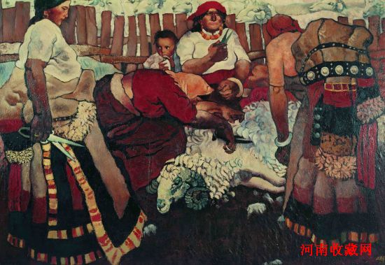 周春芽 同期代表作《剪羊毛》180X250cm 1981年,布面油画