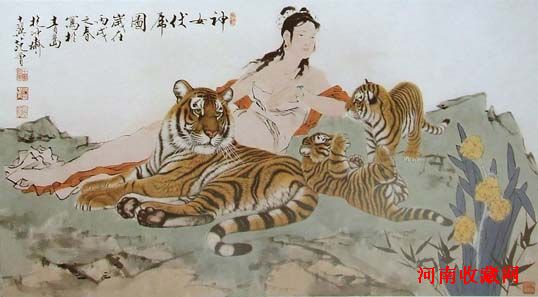 神女伏虎图