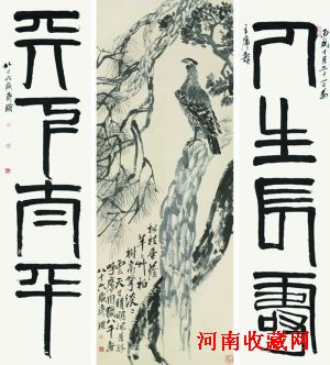 《松柏高立图·篆书四言联》是齐白石最大的作品,该作品画部分纵266厘米,横100厘米。